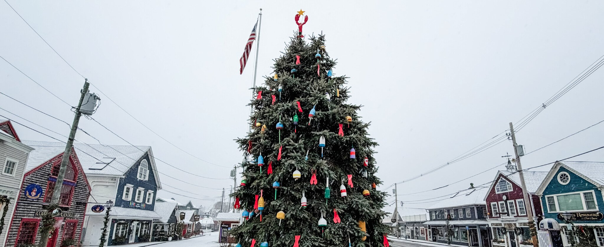 These cards feature gorgeous artwork by our very own Kit Hirst! A long-time Daytrip Staffer, Kit has perfectly captured the holiday season in Kennebunkport in this painting of the buoy tree in the center of Dock Square. Box set of 8 cards.