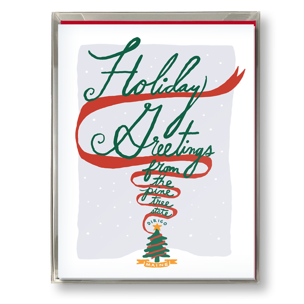 Send a little holiday cheer from Maine with this card designed right here in the Pine Tree State! Box set of 8 cards.