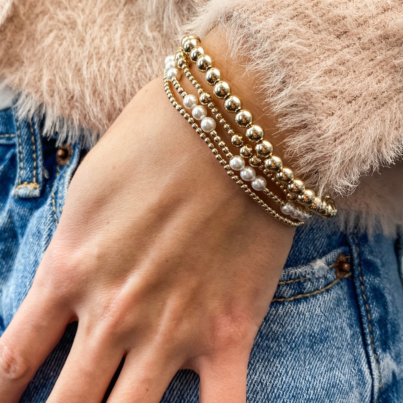 Made with high performance elastic, giving the bracelet a slight stretch and allowing it to easily roll on and off the wrist. Beads measure 2 mm and 4 mm.