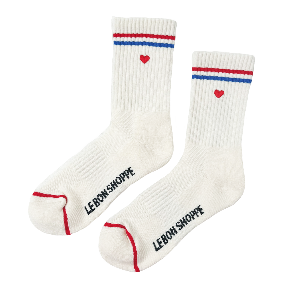 Le Bon Shoppe Embroidered Boyfriend Socks - Milk Heart