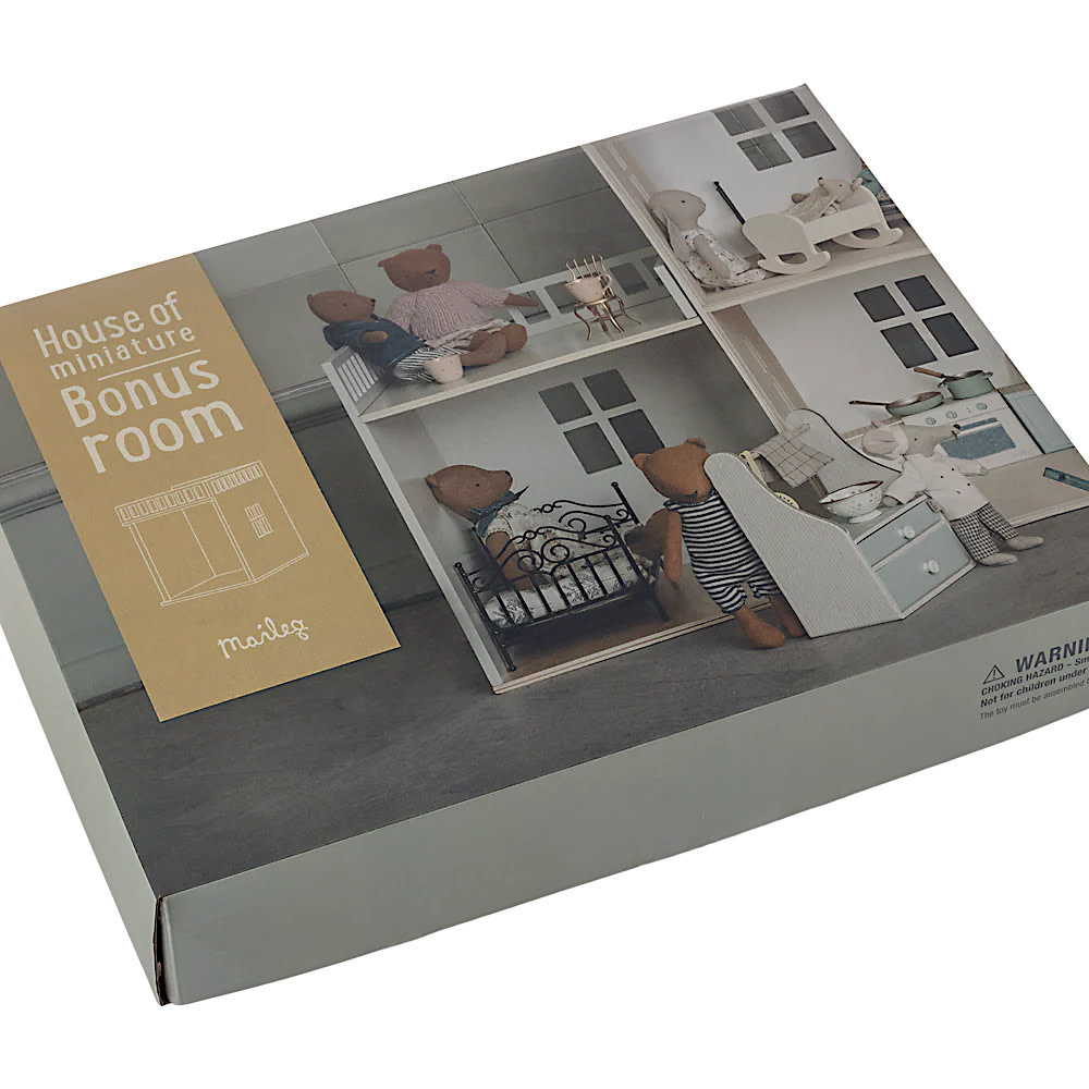 The bonus room is for your free imagination. You can add it to the dollhouse anywhere you like. It is up to you what the use of the bonus room should be. Maybe a garage, an extra room for friends, a fitness room - your choice.