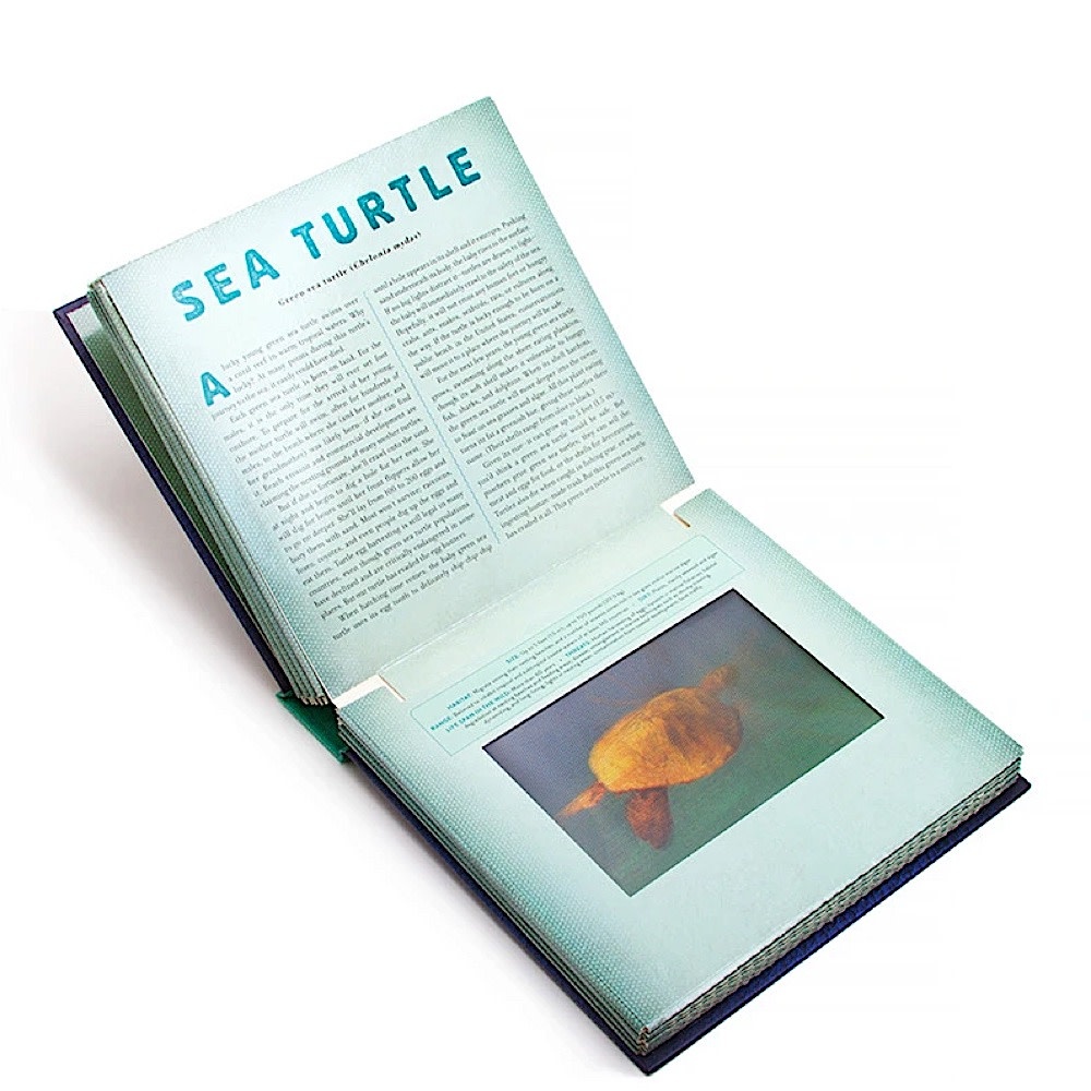 An innovative lenticular-based technology that uses precision sliding lenses and four-color video imagery. Open the book, and the reader is swept into the magic of an underwater world, face-to-face with a floating Yellow-Banded Sweetlips; with a glow-in-the-dark Deep-Sea Anglerfish; with a Sea Horse swaying in balletic motion; with a Sand Tiger Shark gliding along the ocean floor, its gaze haunting, its hook-toothed mouth gulping open and closed.