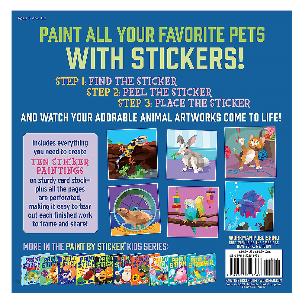 Enjoy hours of screen-free, mess-free, crafting fun with this vibrant sticker book featuring ten adorable pets