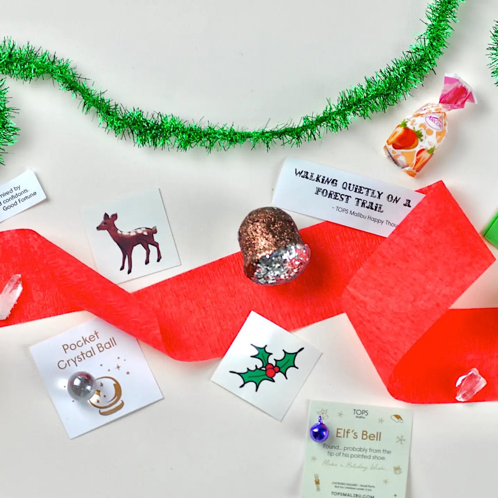 These fun holiday surprises are perfect for putting in a stocking, gifting to loved ones during the festive season, or make great dinner party décor. Unwind the paper ribbons to reveal a cascade of vintage-inspired toys, keepsakes, and surprises!